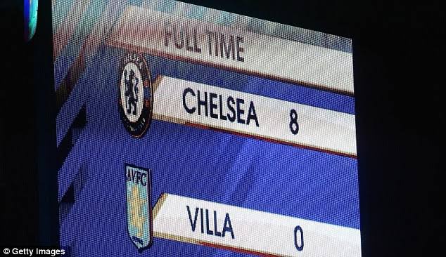 Chelsea have scored a whooping 8 goals pass Aston Villa without conceding any goal at stamford bridge.