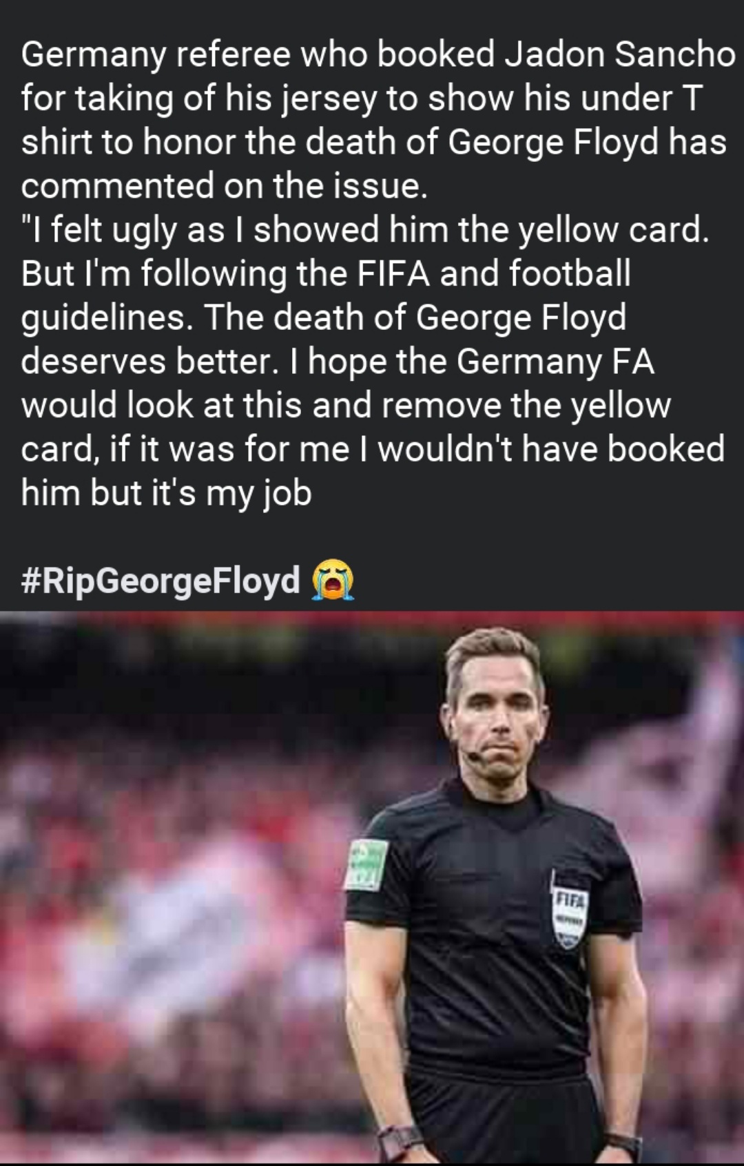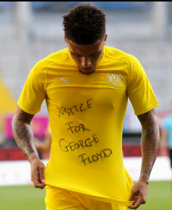 JORDAN SANCHO BOOKED FOR CELEBRATING HIS GOAL BY RAISING/REMOVING HIS JERSEY WRITTEN "JUSTICE FOR FLOYD"